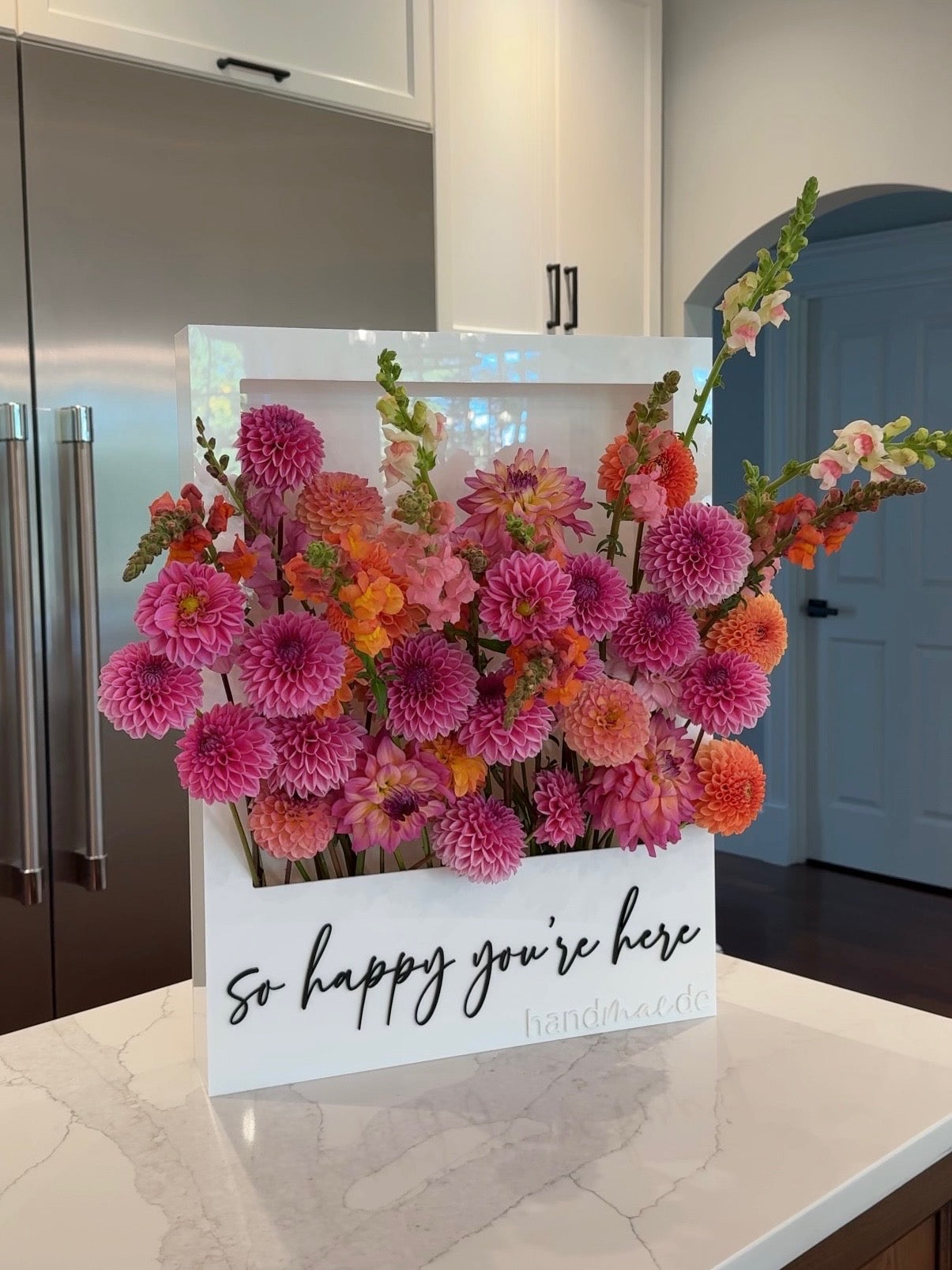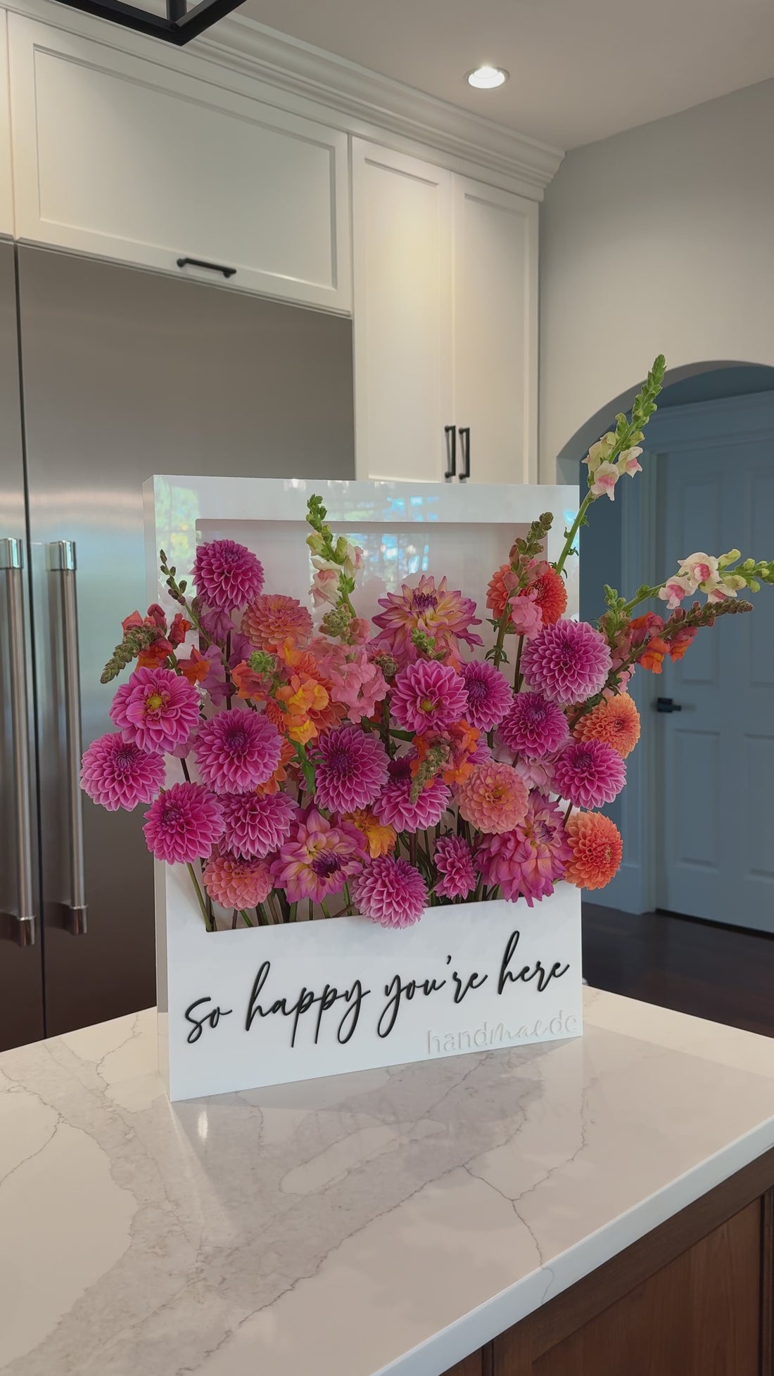 Enhance the atmosphere of any occasion with a customized acrylic flower box. Personalize with any text. Perfect for weddings, baby showers, corporate events, parties, and more. Fill with live or faux flowers.